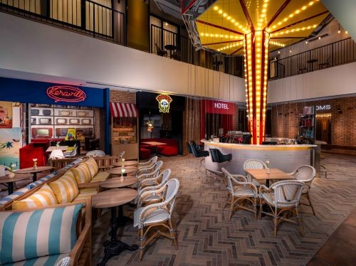 The interior, the music, and the gastronomy together evoke the atmosphere of Budapest from the ’70s to the ’90s. Neon lights, a distinctive carousel-style bar counter, iconic cocktails with a modern twist, and reimagined retro Hungarian flavors. all set within a dynamic, urban environment.